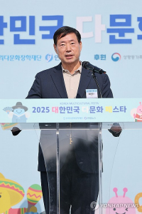 대한민국 다문화 페스타 개회사하는 이종휘 우리다문화장학재단 이사장 (서울=연합뉴스) 신현우 기자 = 이종휘 우리다문화장학재단 이사장이 25일 서울 남산 백범광장에서 열린 2025 대한민국 다문화 페스타에 참석해 개회사하고 있다. 우리다문화장학재단과 국가기간뉴스통신사 연합뉴스가 주최하고, 서울특별시와 성평등가족부가 후원하는 행사는 '다(多)함께 걷는 우리, 다(多)양한 문화를 만나다'를 슬로건으로 열렸다. 2025.10.25 nowwego@yna.co.kr