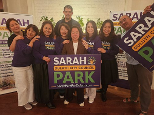 미국 조지아주 덜루스 시의원에 한국계 새라 박 씨 당선 (애틀랜타=연합뉴스) 이종원 통신원 = 미국 조지아주 덜루스 시의원에 당선된 한국계 새라 박(한국명 박유정)씨가 4일(현지시간) 당선 확정 후 지지자들과 함께 기념촬영하고 있다. 2025.11.5 higher2501@yna.co.kr