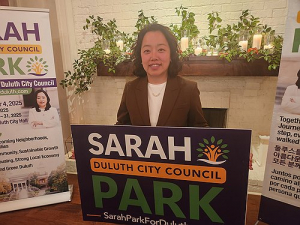 미국 조지아주 덜루스 시의원에 한국계 새라 박 씨 당선 (애틀랜타=연합뉴스) 이종원 통신원 = 미국 조지아주 덜루스 시의원에 당선된 한국계 새라 박(한국명 박유정)씨가 4일(현지시간) 당선 확정 후 소감을 발표하고 있다. 2025.11.5 higher2501@yna.co.kr